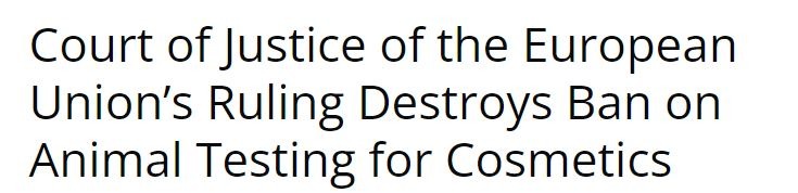 Od 2013 roku w UE obowiązuje zakaz testowania na zwierzętach składników kosmetycznych oraz produktów gotowych. Zgodnie z oficjalną interpretacją wzajemnego powiązania rozporządzeń REACH oraz kosmetycznego: