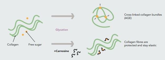 Surowiec w formie liposomów z karnozyną i przeciwutleniaczami - tokoferolem i ekstraktem z ostropestu plamistego (zawiera polifenol - silymarin, chroniący przed wolnymi rodnikami i utlenianiem lipidów). Karnozyna to dipeptyd, który występują naturalnie w naszym organizmie. Hamuje on sieciowanie białek, łącząc się z cukrami, przez co chroni cząsteczki kolagenu i elastynu. Użycie liposomów zwiększa biodostępność.
