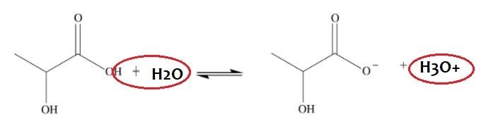 Hydroksykwasy są kwasami, a więc mogą dysocjować (rozpadać się na jony) na jon hydroniowy oraz resztę kwasową. Często dla uproszczenia nie mówi się o jonie hydroniowym (H3O+) a o kationie wodoru (H+), ale w środowisku wodnym bliższy prawdy jest właśnie jon hydroniowy. Poniżej przykład dysocjacji kwasu mlekowego.