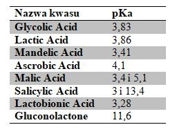 Im niższe pH, tym więcej cząsteczek kwasu występuje w formie wolnej i biodostępnej, ale rośnie również ryzyko podrażnień skóry (właśnie ze względu na niskie pH). Im wyższe pH, tym działanie kwasów może być słabsze, dlatego generalnie przyjmuje się, że jeśli chcemy wykorzystać złuszczające działanie α-hydroksykwasów, powinno stosować się je w stężeniach 4-10%, a pH produktu powinno być mniejsze niż 4. W przypadku kwasu salicylowego, efektywne będą stężenia 1-2%, bez większego znaczenia pH kosmetyku, natomiast dla PHA – stężenia powinny być wysokie (ok. 10%), a pH produktu również nie jest tak istotne. Alfa-hydroksykwasy w formie zjonizowanej (lub inaczej soli), działają nawilżająco. Jeśli więc mamy kosmetyk, który zawiera poniżej 5% AHA w pH powyżej 4,5, będzie on działał nawilżająco.