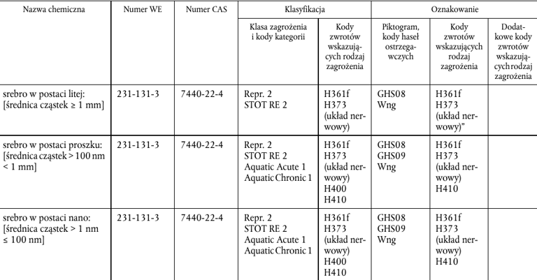 Opublikowane już 22 ATP do CLP (Rozporządzenie Delegowane 2024/2564) wprowadza klasyfikację jako Repr. 2 dla srebra, które w kosmetykach występuje pod nazwami wg INCI jako CI 77820, Colloidal Silver lub Silver
