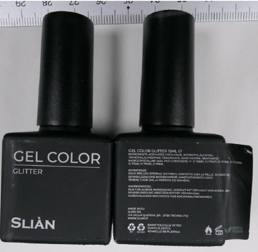 CI 45170, Cl 45160 (BASIC RED 1), BASIC YELLOW 40, CI 45174 (BASIC VIOLET 11:1) – barwniki zakazane w kosmetykach. Wszystkie obecne w produkcie do stylizacji paznokci zgłoszonym w Safety Gate