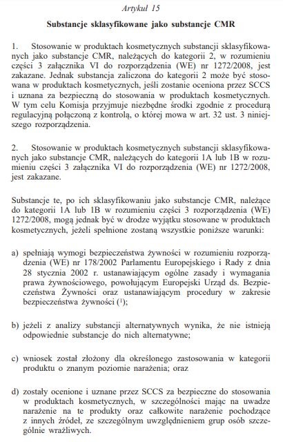 W tym miejscu należy też przypomnieć, że co do zasady, substancje CMR oraz w związku z wprowadzeniem nowej klasy zagrożeń - ED - są zakazane do stosowania w kosmetykach (poniżej tekst z rozporządzenia 1223/2009).
