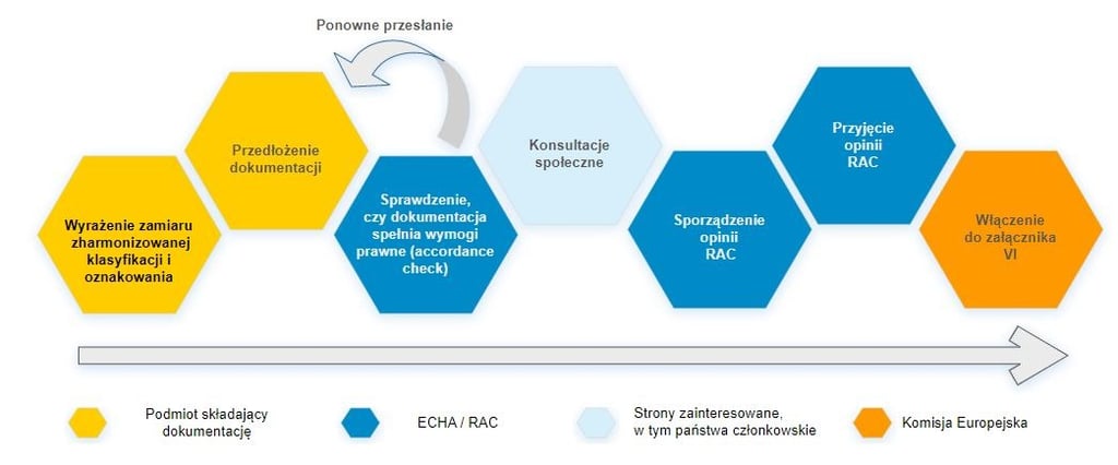 Procedura nadawania zharmonizowanej klasyfikacji (zgodnie z CLP), wygląda następująco: