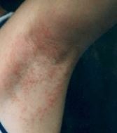 - Antyperspiranty - zawierają sole aluminium, które reagują z elektrolitami obecnymi w pocie, blokując ujścia gruczołów potowych (zapobiegają wydzielaniu potu). Kontaktowe zapalenie skóry występuje wówczas w okolicy dołu pachowego.