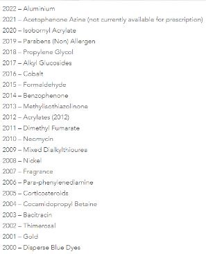 Allergen of the Year to inicjatywa stworzona przez American Contact Dermatitis Society, stowarzyszenie, które corocznie "nagradza" niechlubnym tytułem jakąś substancję. która powoduje alergie skórne i zapalenie kontaktowe skóry. Celem "nagrody" jest zwrócenie uwagi na substancje, które wywołują najbardziej znaczące efekty kliniczne, są niedostatecznie rozpoznane oraz na te, dla których zmieniły się wzorce narażenia. Pierwotnie inicjatywa miała charakter akademicki, ale z czasem stały się one ważnym punktem kształtowania świadomości społecznej w zakresie alergenów kontaktowych. Poniżej lista składników, które "uhonorowano" do tej pory.