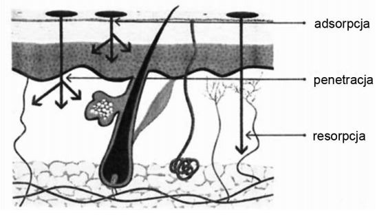 - resorpcji - czyli wchłaniania do układu limfatycznego lub krwionośnego, co prowadzi do absorpcji ogólnoustrojowej (nie jest to pożądane, a nawet nie powinno mieć miejsca w przypadku kosmetyku - takie działanie zarezerwowane jest dla substancji leczniczych).