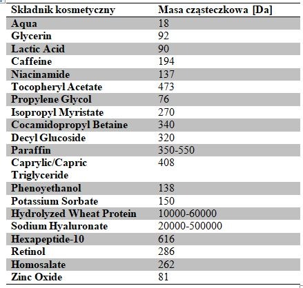 Jakie masy cząsteczkowe mają składniki kosmetyczne?